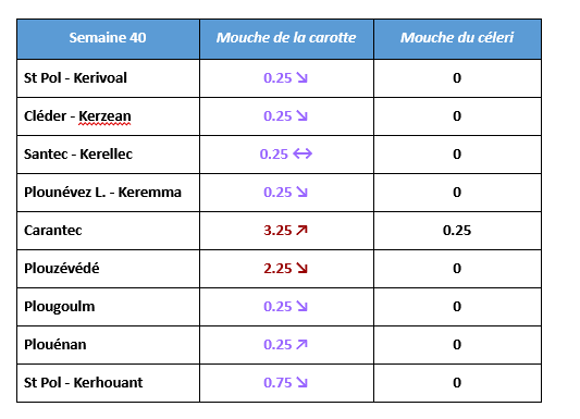 - Mouche du céleri : piégeages faibles, peu de risque.